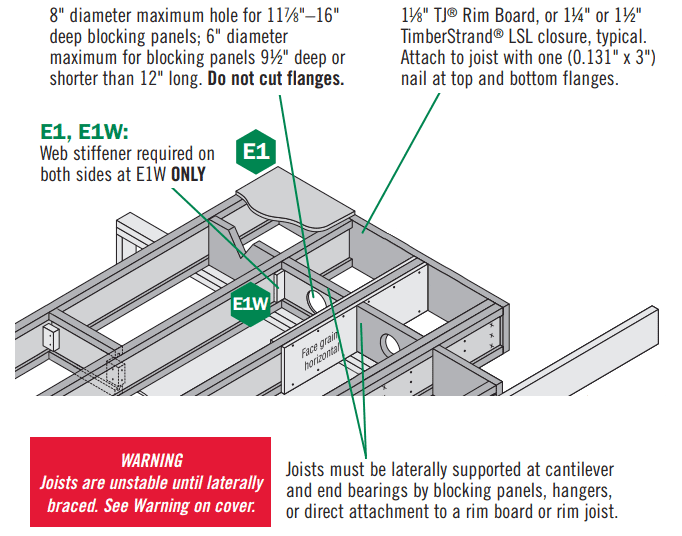 Additional information is available and necessary to consider when using TJI Joists. Please consult one of the documents below for full installation instructions. The diagram and videos above correspond to page three of the Installation Guide for Floor and Roof Framing.